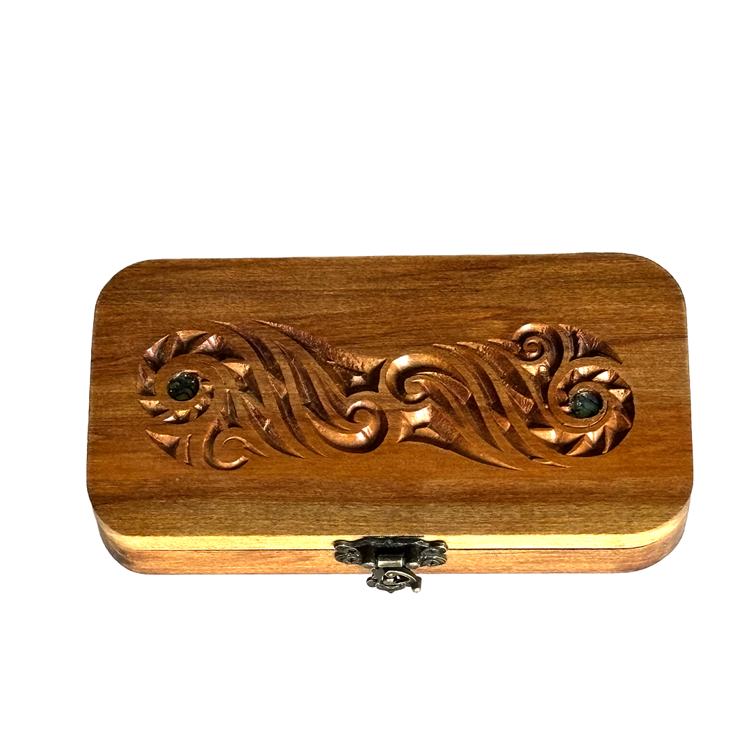 Unlock your creativity with this uniquely hand-carved Taniwha Crochet Hook Box made from solid recycled Rimu.
