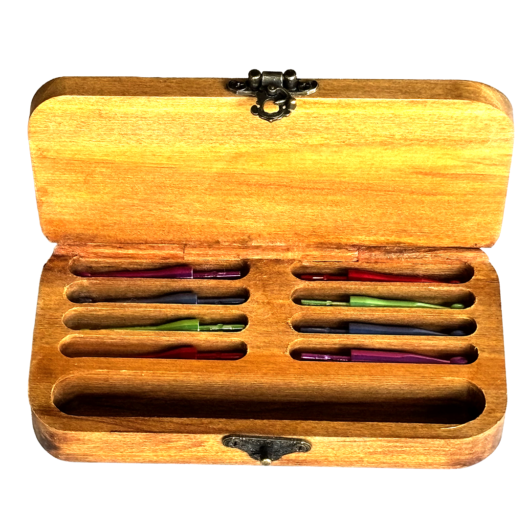 This beautifully handcrafted Crochet Hook Box is carved from recycled Rimu which was originally part of a bed frame, giving each piece a story as rich as its grain. This accented heavy 3D intertwined relief carved lid will make this set the envoy of your fellow hookers.